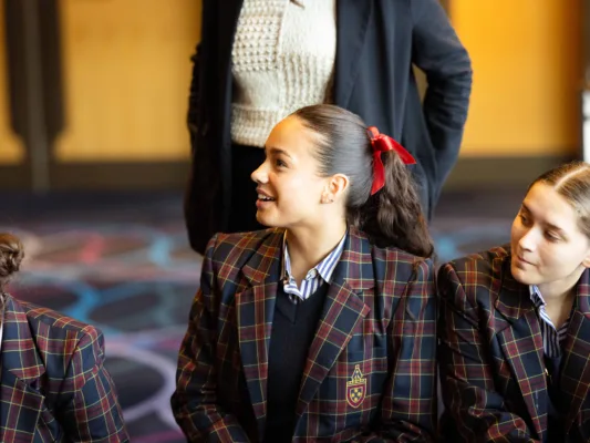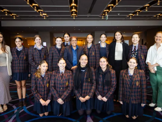 We were privileged to have several of our Indigenous students join us for lunch and meet Cathy beforehand. The girls were thrilled, especially Suzannah G (Year 12), who was lucky enough to be invited on stage at the last moment to ask Cathy a question. In true St Cath’s fashion, Suzannah stepped up without hesitation, asking Cathy about her most meaningful interaction with strangers. The question left Cathy momentarily speechless before she replied, with tears in her eyes, that it had been meeting our girls earlier that day, which left her feeling hopeful for the future.